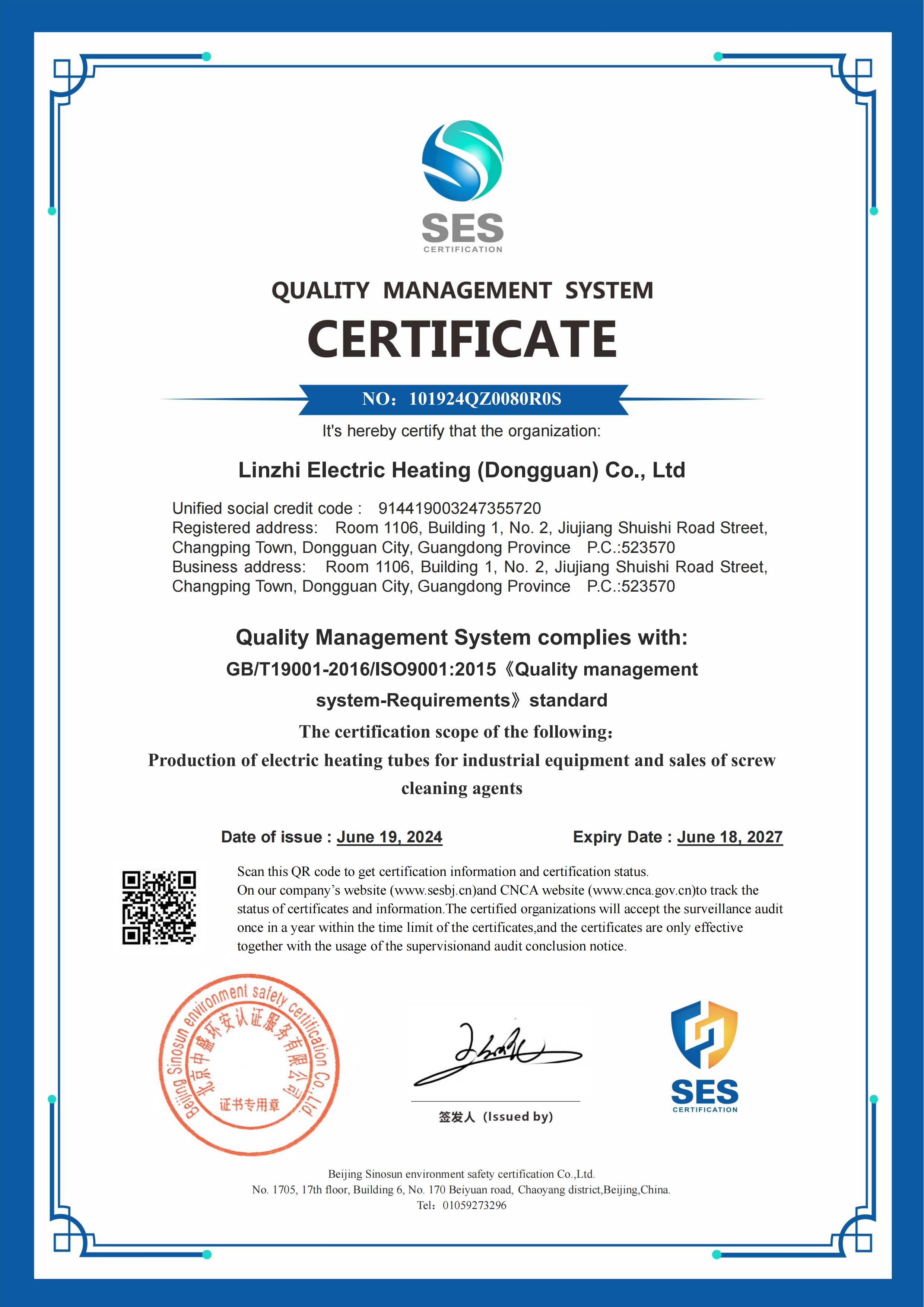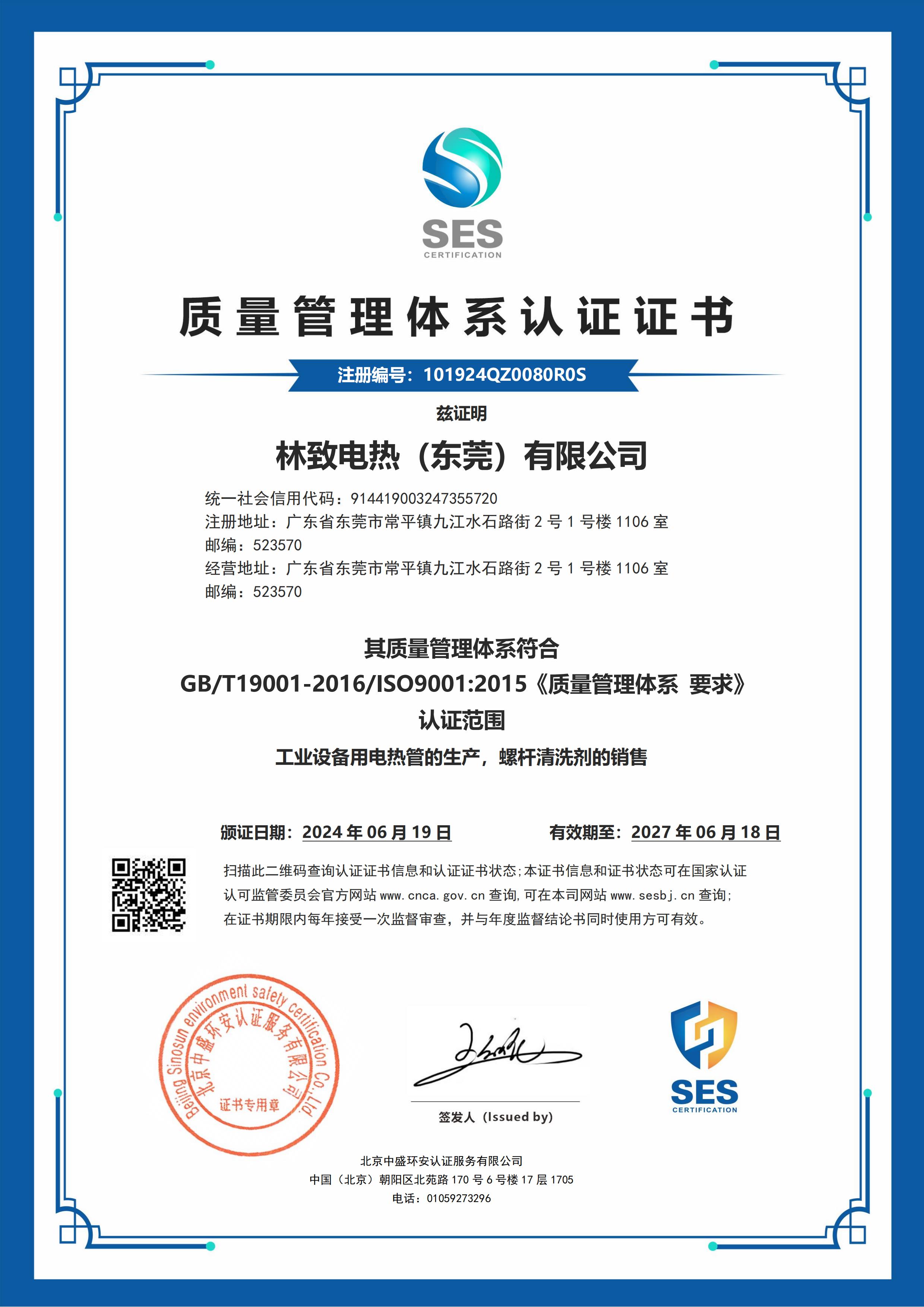 ISO9001質(zhì)量管理體系證書英文版
