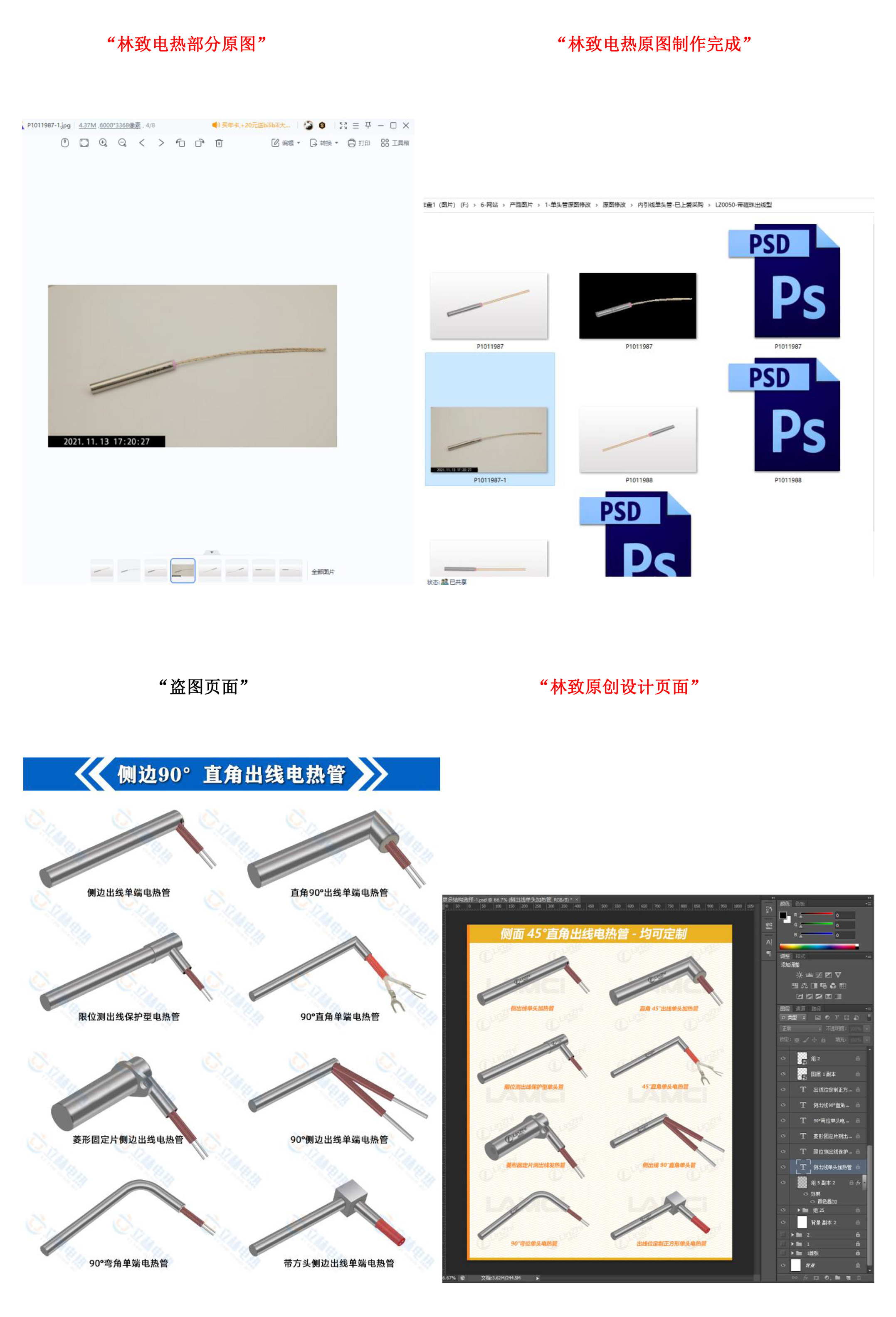 原版不動的“偷盜”【林致電熱】原創(chuàng)圖片,嚴(yán)重侵權(quán)【林致電熱公司】的著作權(quán),除了公司名稱與LOGO、水印、背景色、微調(diào)名稱叫法之外,都與【林致電熱】原創(chuàng)的產(chǎn)品一模一樣。