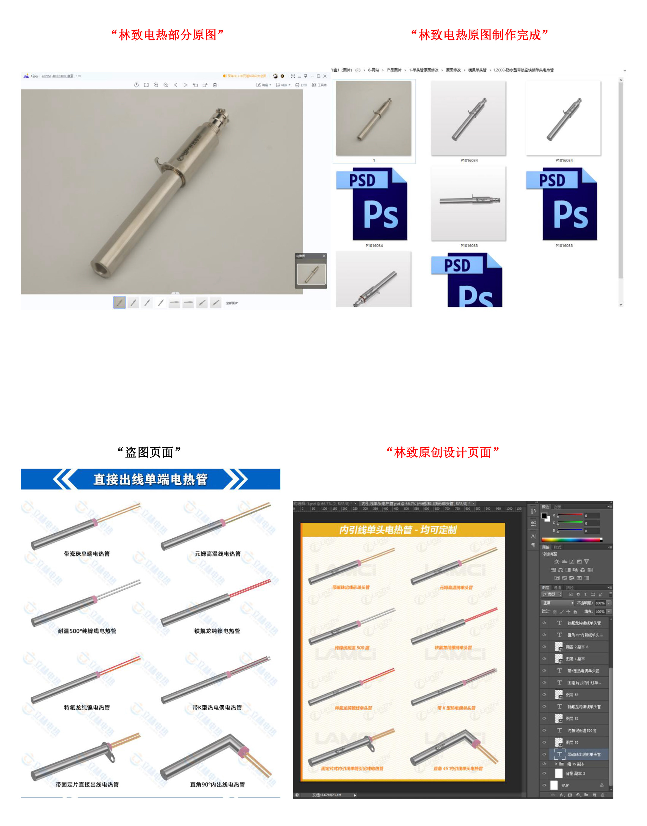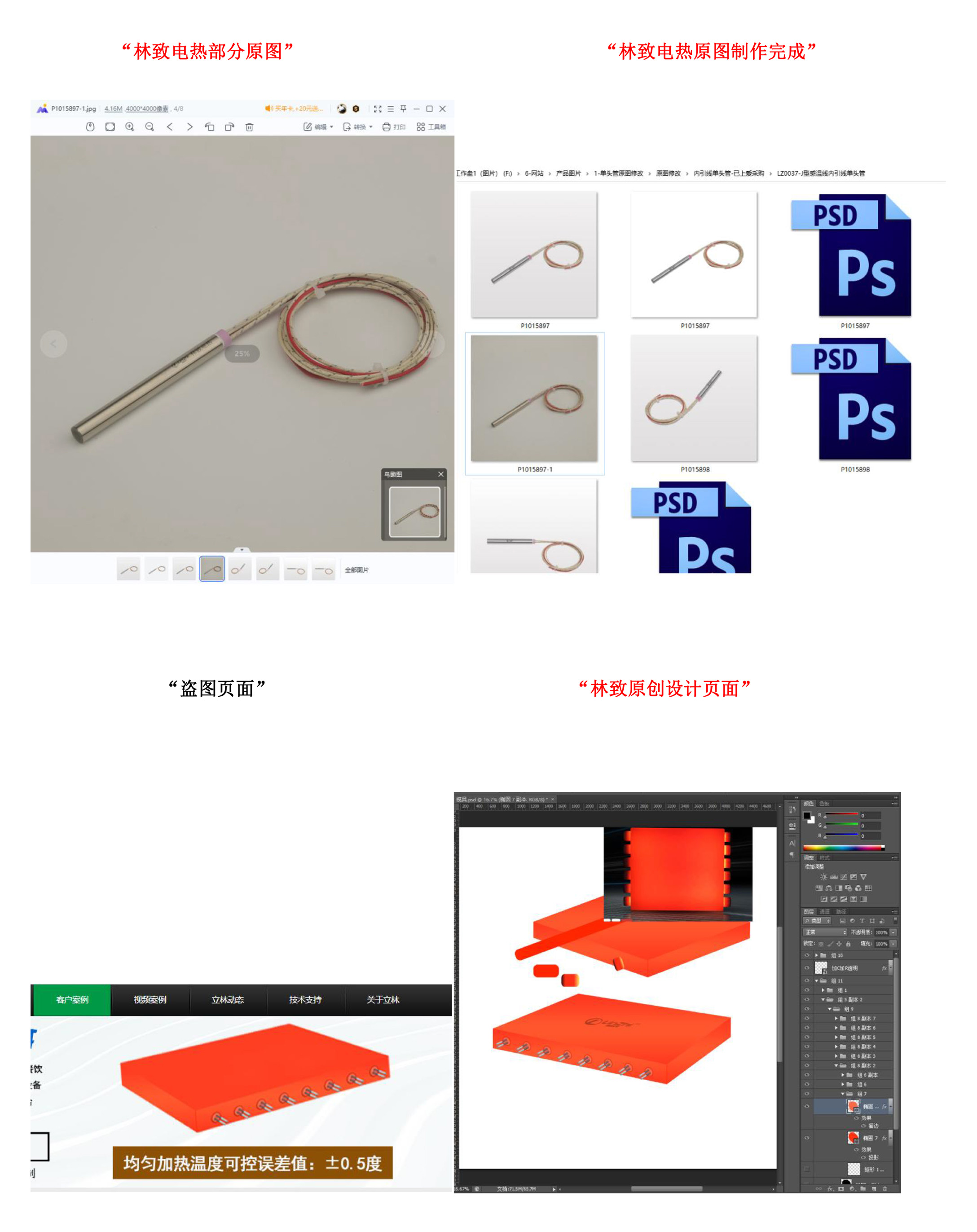 最近【林致電熱】網(wǎng)管部門人員發(fā)現(xiàn)有同行嚴(yán)重“偷盜”【林致電熱】設(shè)計(jì)的原創(chuàng)圖片,只去掉【林致電熱】LOGO與水印,盜圖相似度100%,連圖片排版方式、圖片角度完全相同。