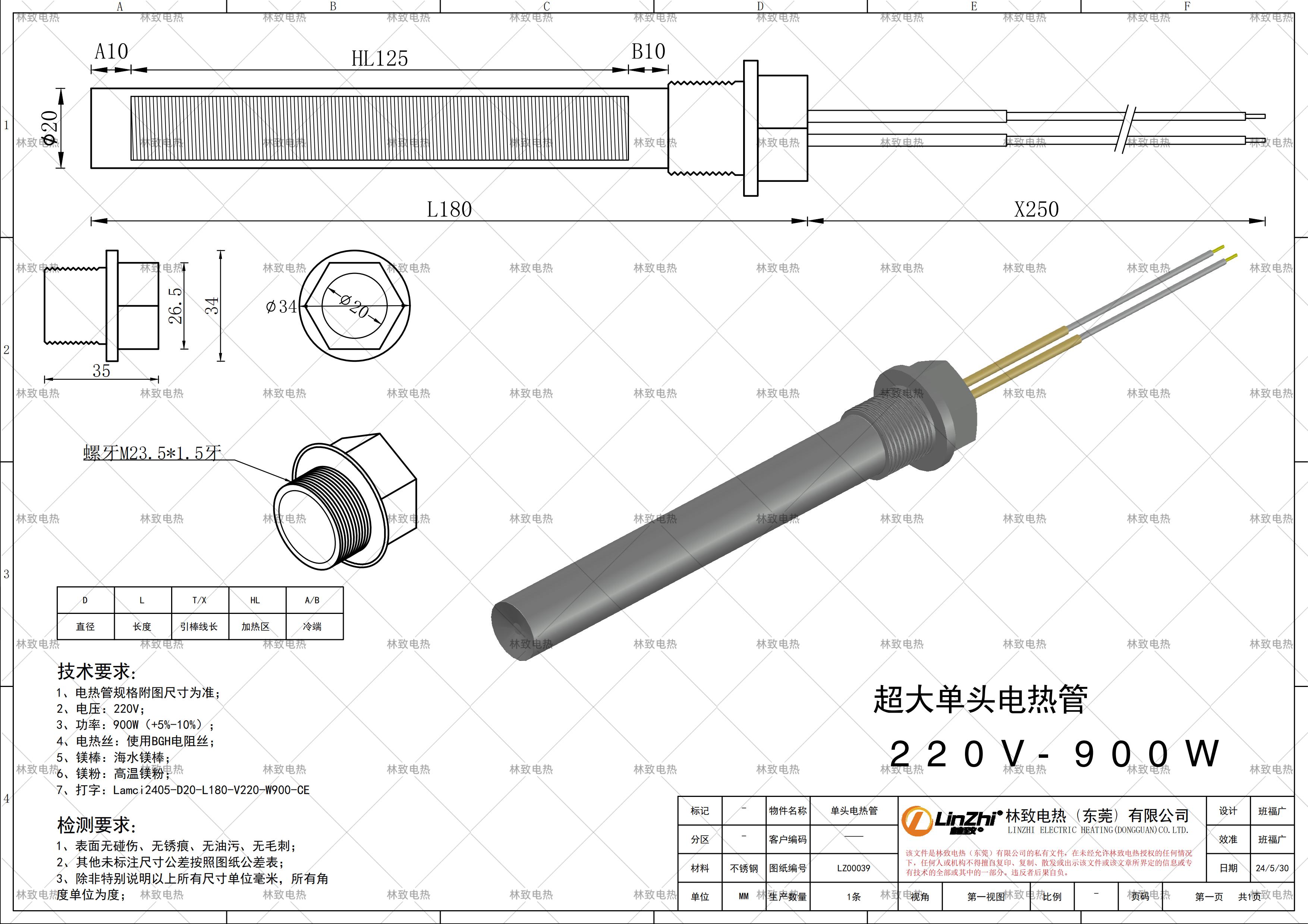 本條產品規(guī)格為下圖紙的規(guī)格*電壓*功率*線長,如需要定制其他規(guī)格請聯系林致電熱給我們數據,聯系林致電熱可以把圖紙截圖或者報本圖紙編碼:LZ00039即可。