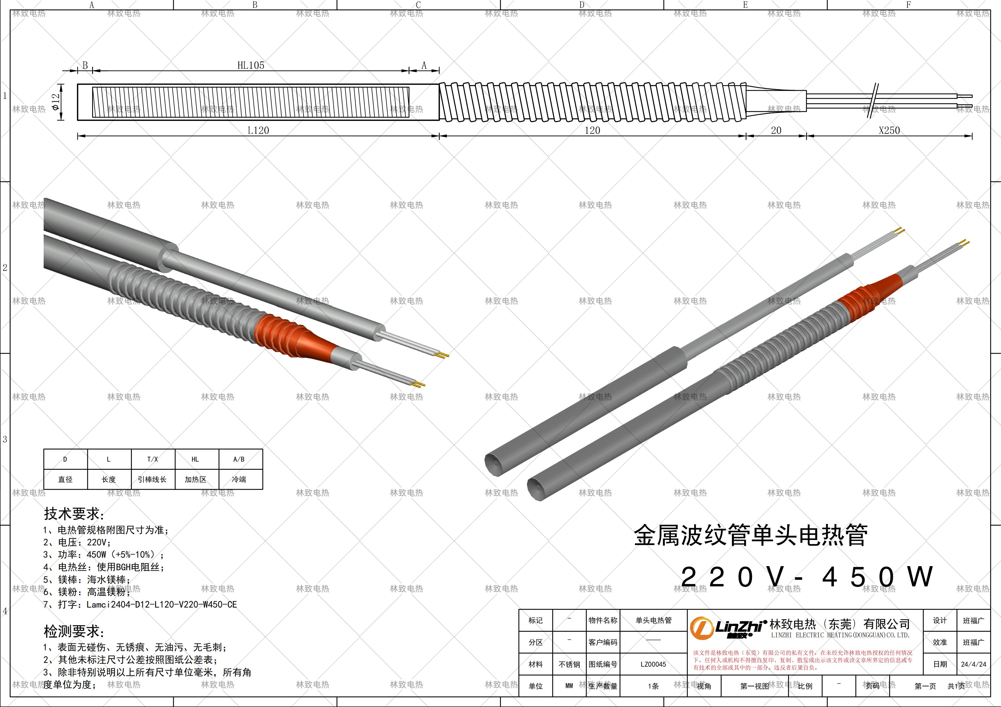 本條產(chǎn)品規(guī)格為下圖紙的規(guī)格*電壓*功率*線長(zhǎng),如需要定制其他規(guī)格請(qǐng)聯(lián)系林致電熱給我們數(shù)據(jù),聯(lián)系林致電熱可以把圖紙截圖或者報(bào)本圖紙編碼:LZ00045即可。