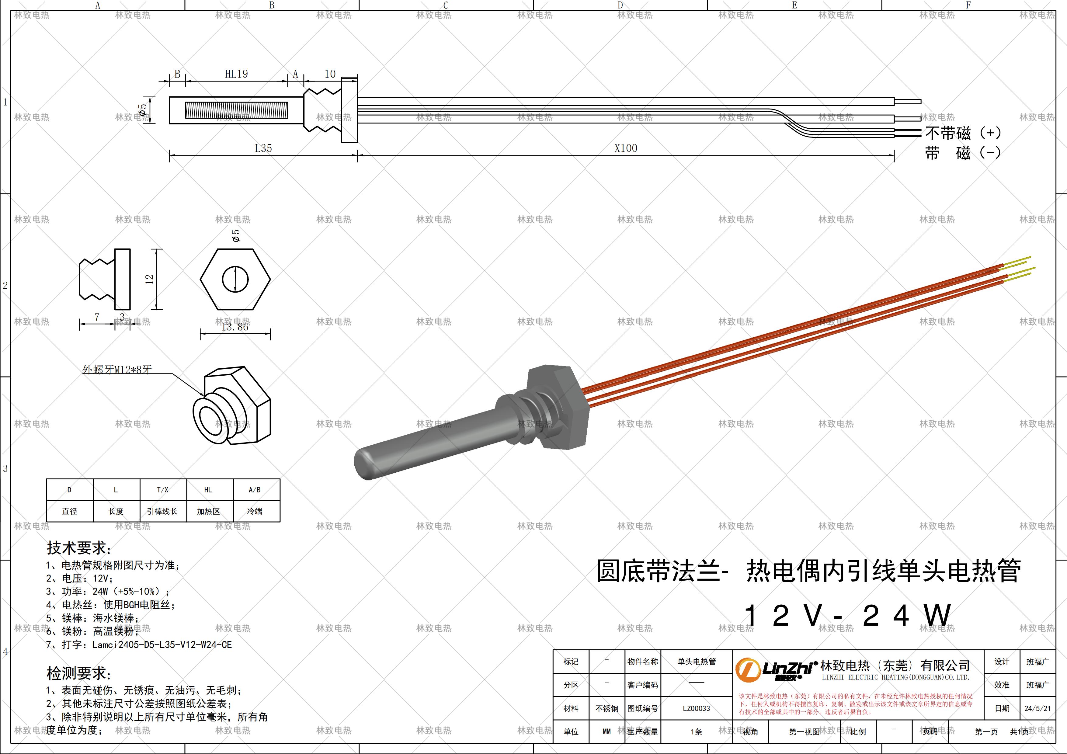 本條產(chǎn)品規(guī)格為下圖紙的規(guī)格*電壓*功率*線長,如需要定制其他規(guī)格請聯(lián)系林致電熱給我們數(shù)據(jù),聯(lián)系林致電熱可以把圖紙截圖或者報(bào)本圖紙編碼:LZ00033即可。