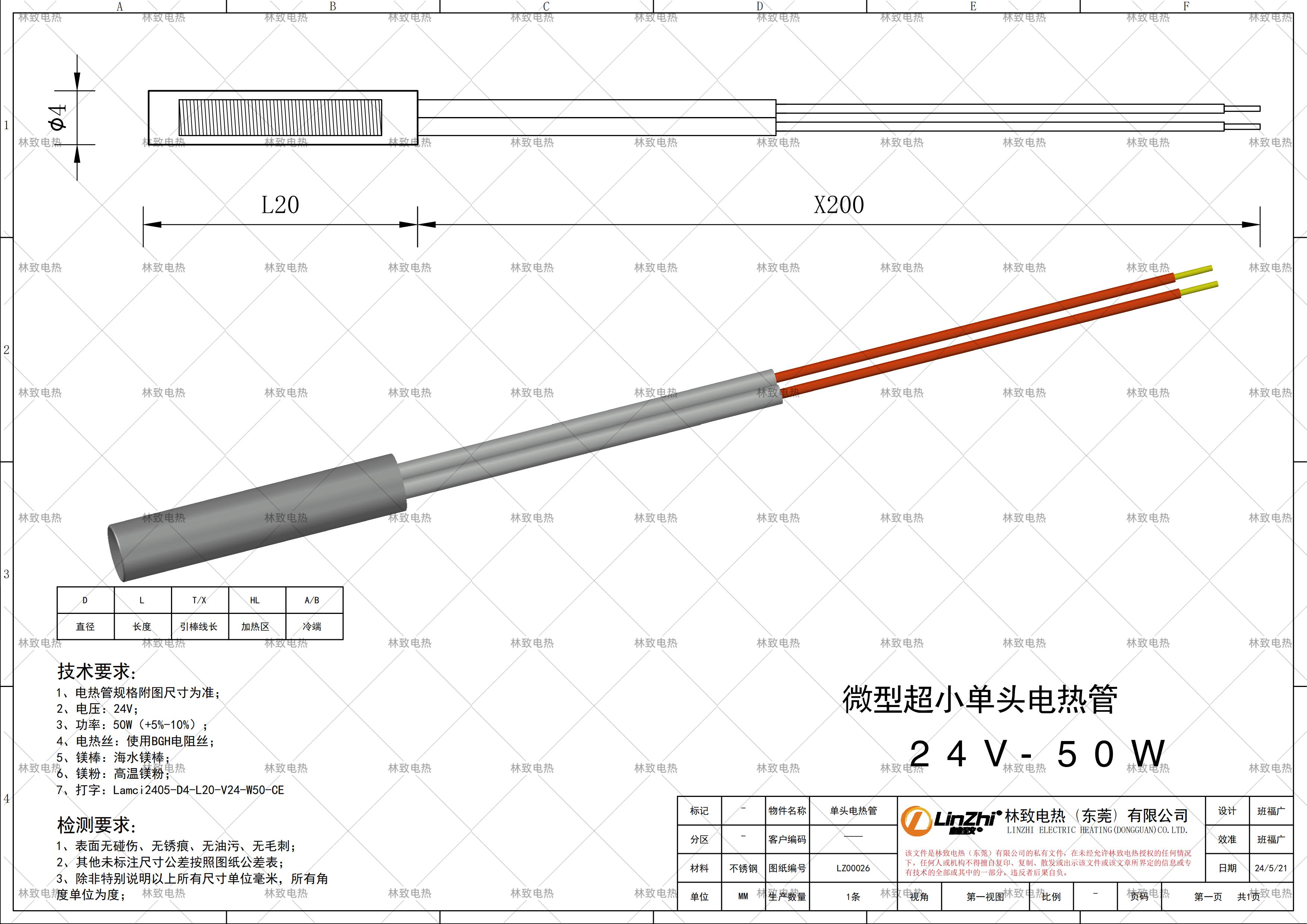 本條產(chǎn)品規(guī)格為下圖紙的規(guī)格*電壓*功率*線長,如需要定制其他規(guī)格請聯(lián)系林致電熱給我們數(shù)據(jù),聯(lián)系林致電熱可以把圖紙截圖或者報本圖紙編碼:LZ00026即可。