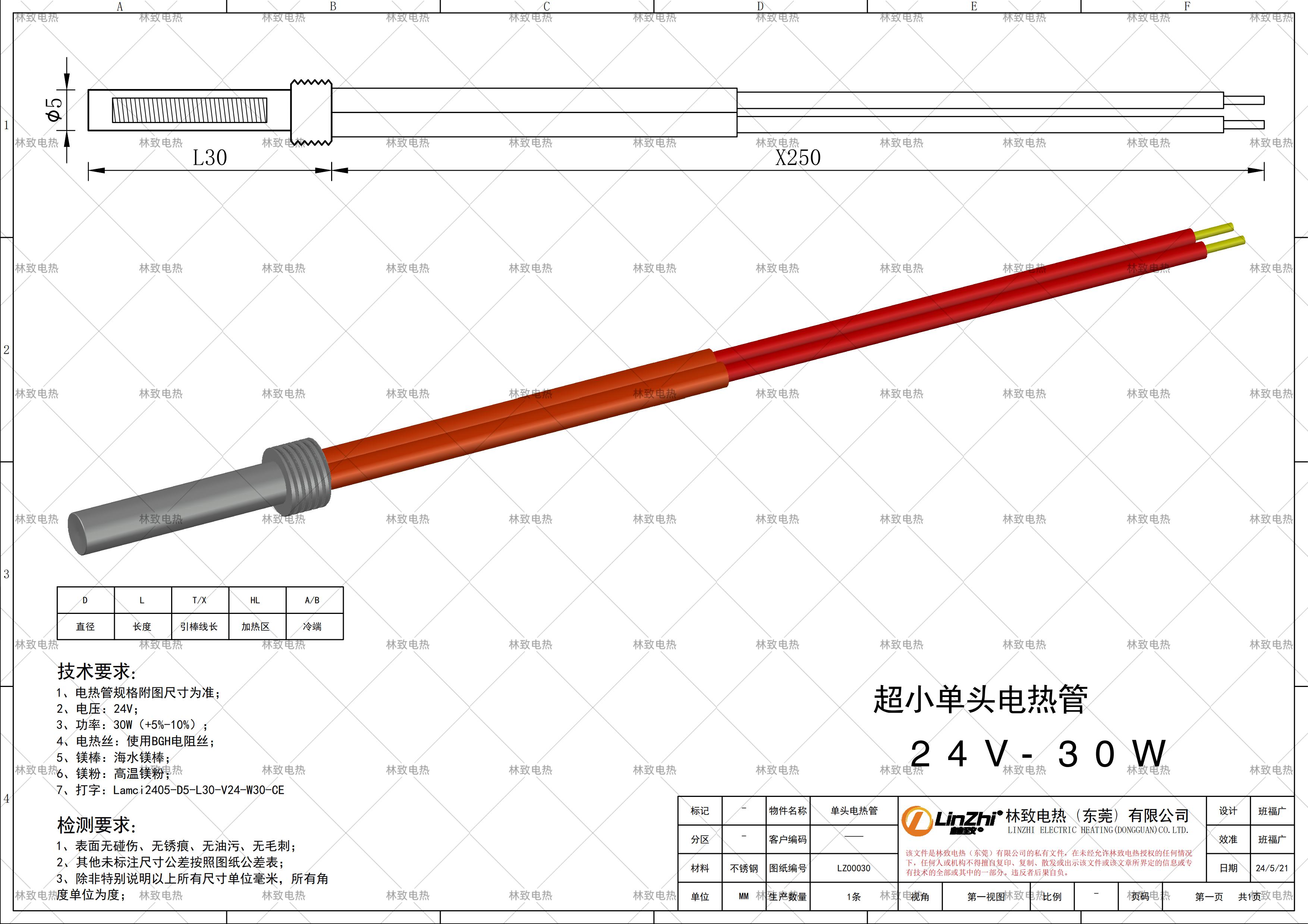 本條產(chǎn)品規(guī)格為下圖紙的規(guī)格*電壓*功率*線長,如需要定制其他規(guī)格請聯(lián)系林致電熱給我們數(shù)據(jù),聯(lián)系林致電熱可以把圖紙截圖或者報(bào)本圖紙編碼:LZ00030即可。