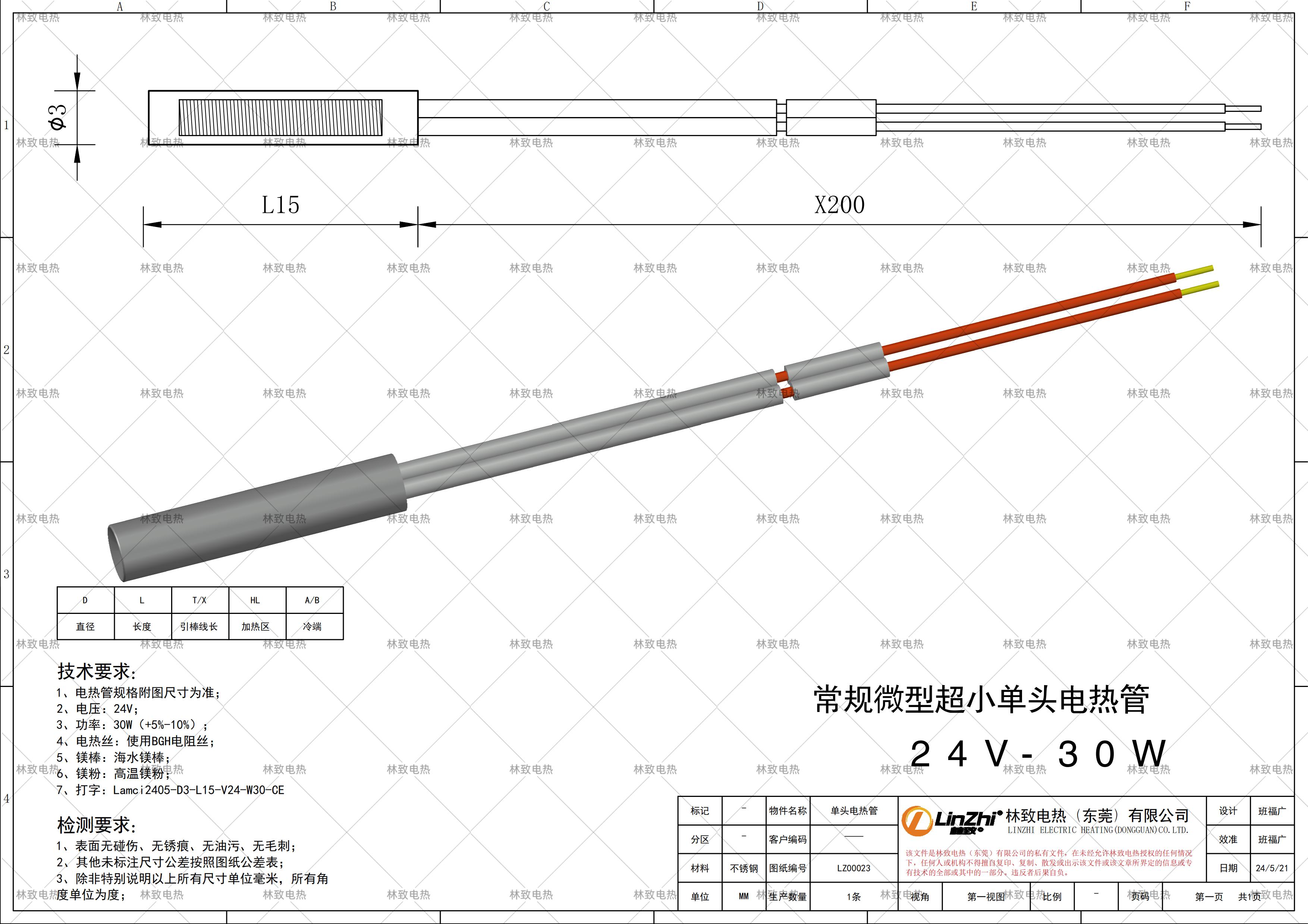 本條產(chǎn)品規(guī)格為下圖紙的規(guī)格*電壓*功率*線長(zhǎng),如需要定制其他規(guī)格請(qǐng)聯(lián)系林致電熱給我們數(shù)據(jù),聯(lián)系林致電熱可以把圖紙截圖或者報(bào)本圖紙編碼:LZ00023即可。