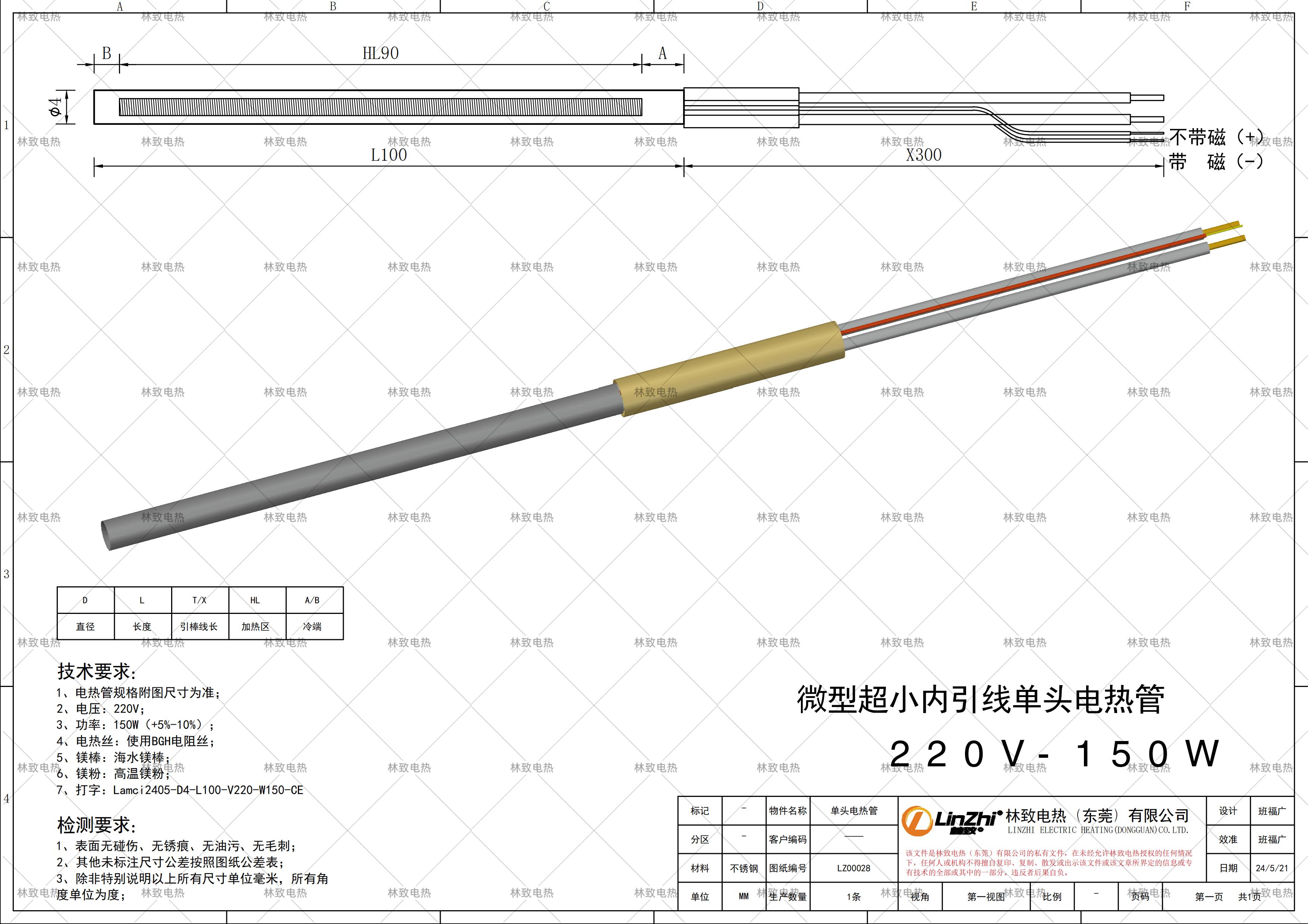 本條產(chǎn)品規(guī)格為下圖紙的規(guī)格*電壓*功率*線長(zhǎng),如需要定制其他規(guī)格請(qǐng)聯(lián)系林致電熱給我們數(shù)據(jù),聯(lián)系林致電熱可以把圖紙截圖或者報(bào)本圖紙編碼:LZ00028即可。