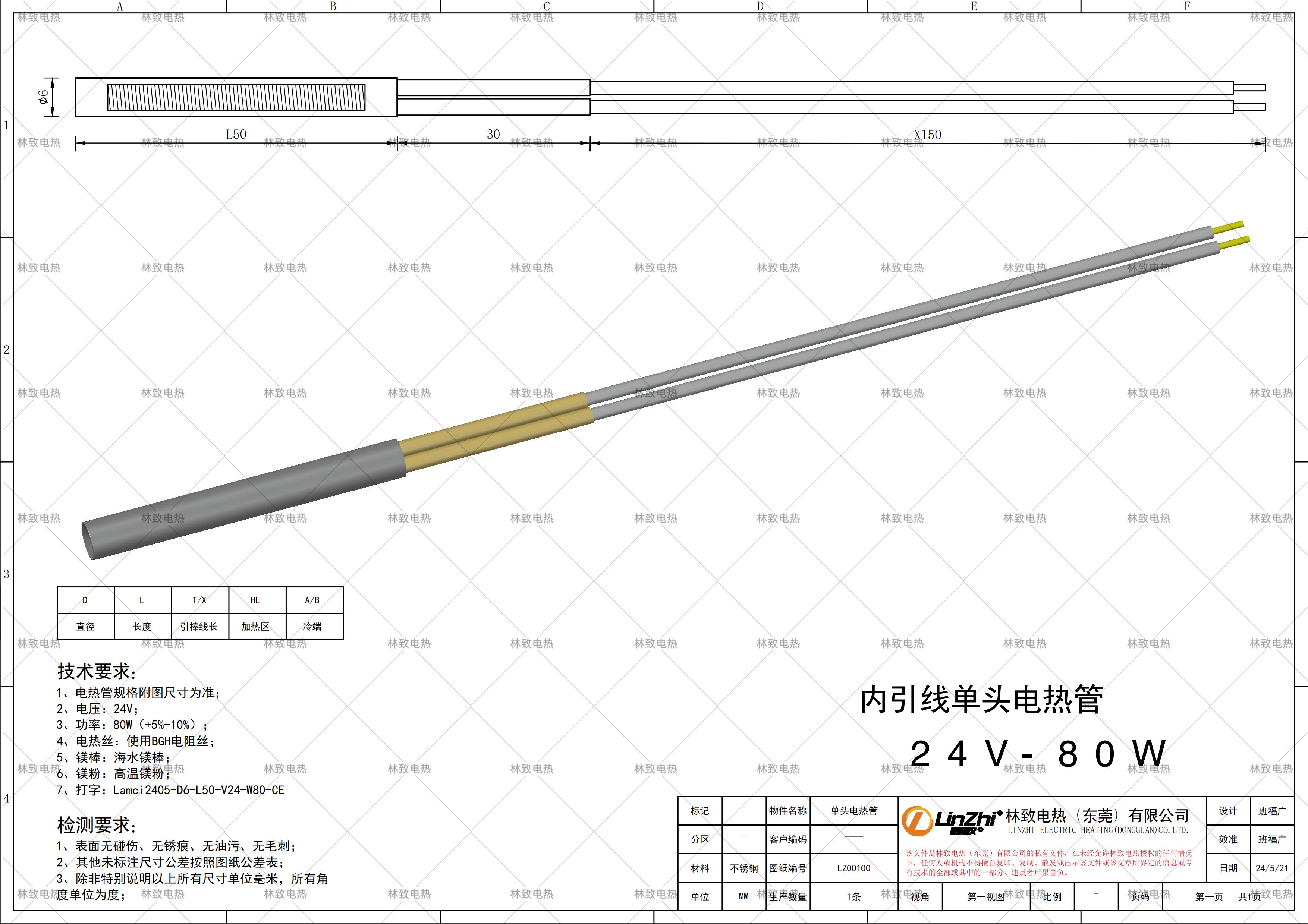 本條產(chǎn)品規(guī)格為下圖紙的規(guī)格*電壓*功率*線長,如需要定制其他規(guī)格請聯(lián)系林致電熱給我們數(shù)據(jù),聯(lián)系林致電熱可以把圖紙截圖或者報本圖紙編碼:LZ00100即可。