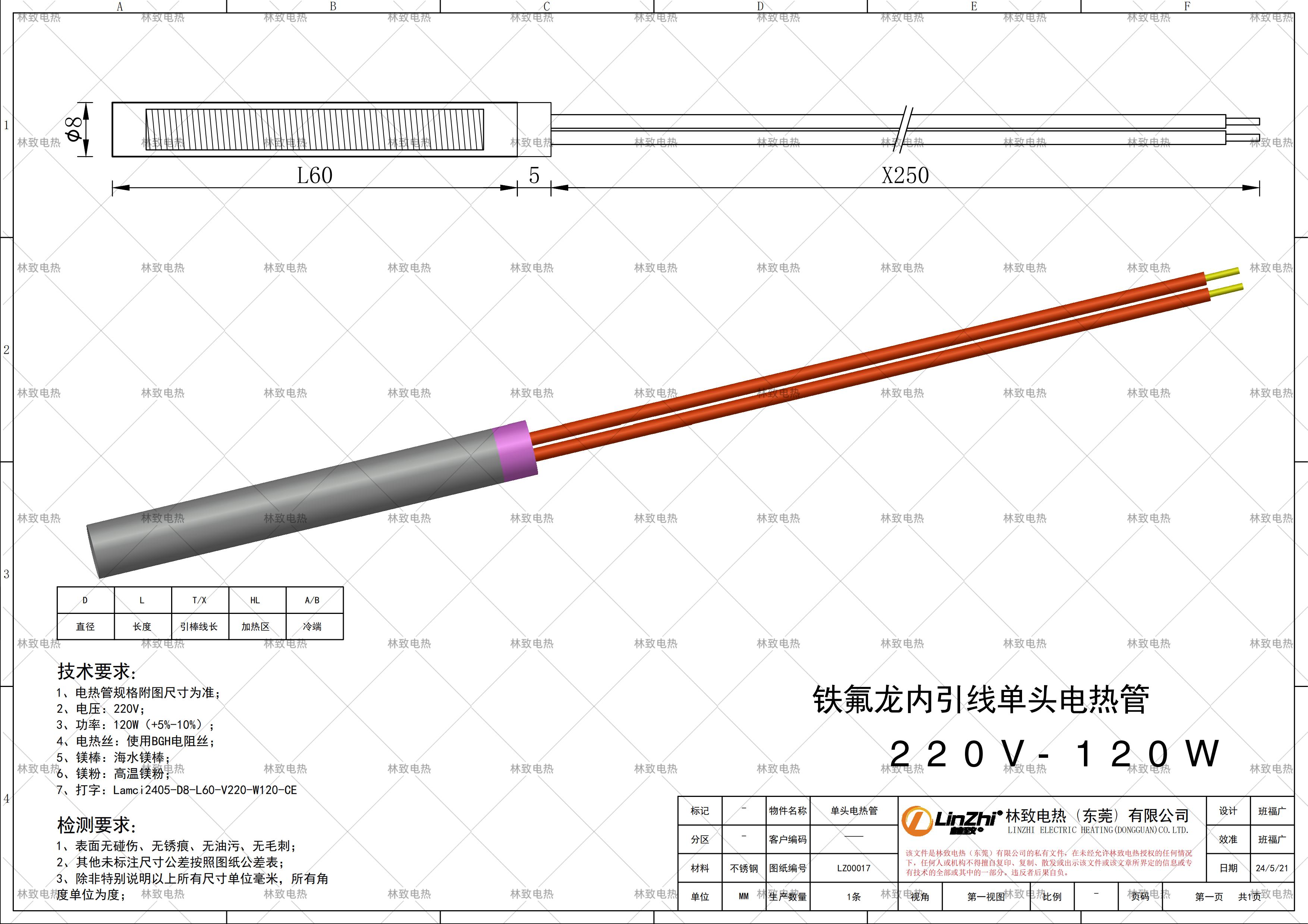 本條產品規(guī)格為下圖紙的規(guī)格*電壓*功率*線長,如需要定制其他規(guī)格請聯系林致電熱給我們數據,聯系林致電熱可以把圖紙截圖或者報本圖紙編碼:LZ00017即可。
