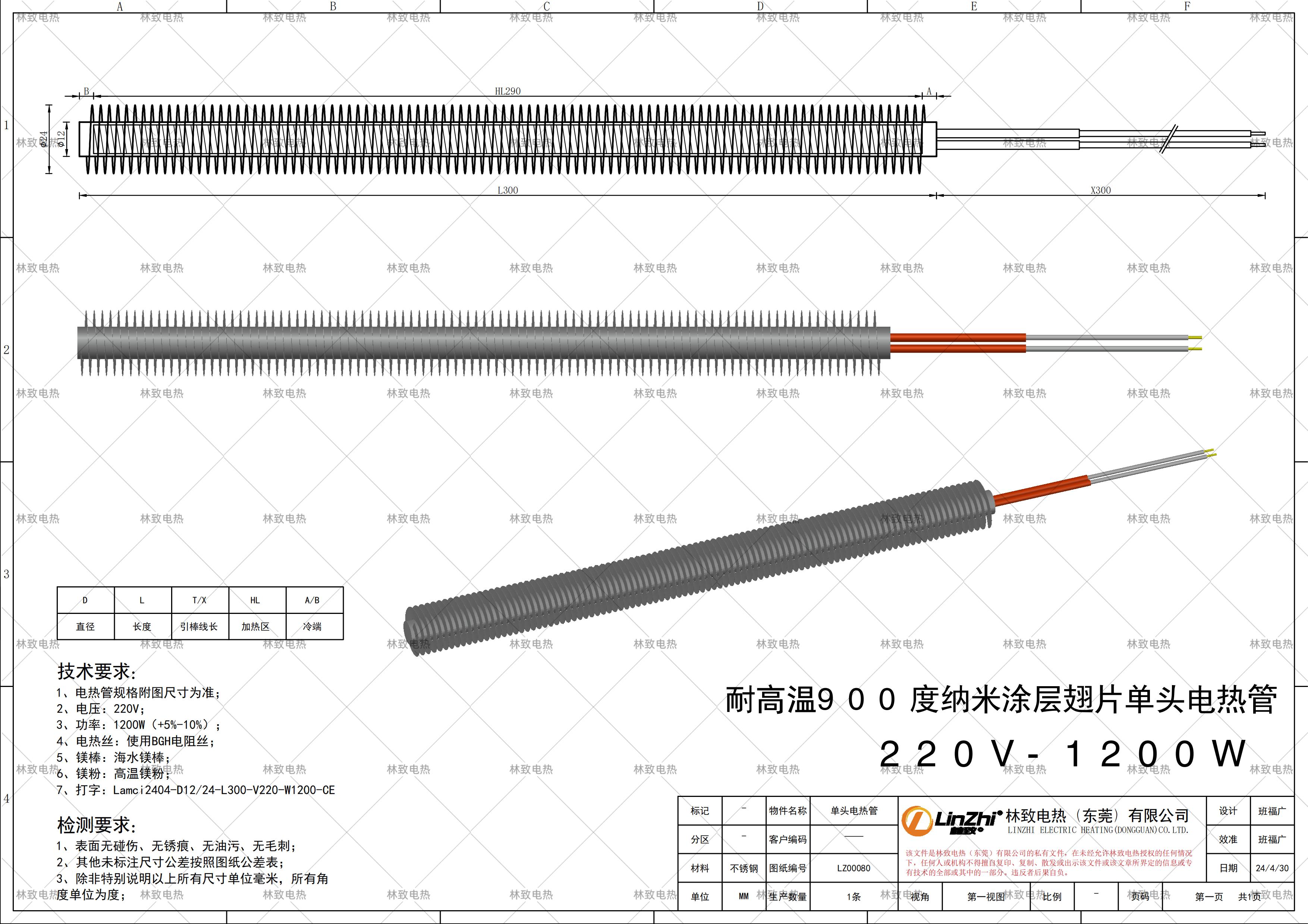 本條產品規(guī)格為下圖紙的規(guī)格*電壓*功率*線長,如需要定制其他規(guī)格請聯(lián)系林致電熱給我們數(shù)據(jù),聯(lián)系林致電熱可以把圖紙截圖或者報本圖紙編碼:LZ00080即可。
