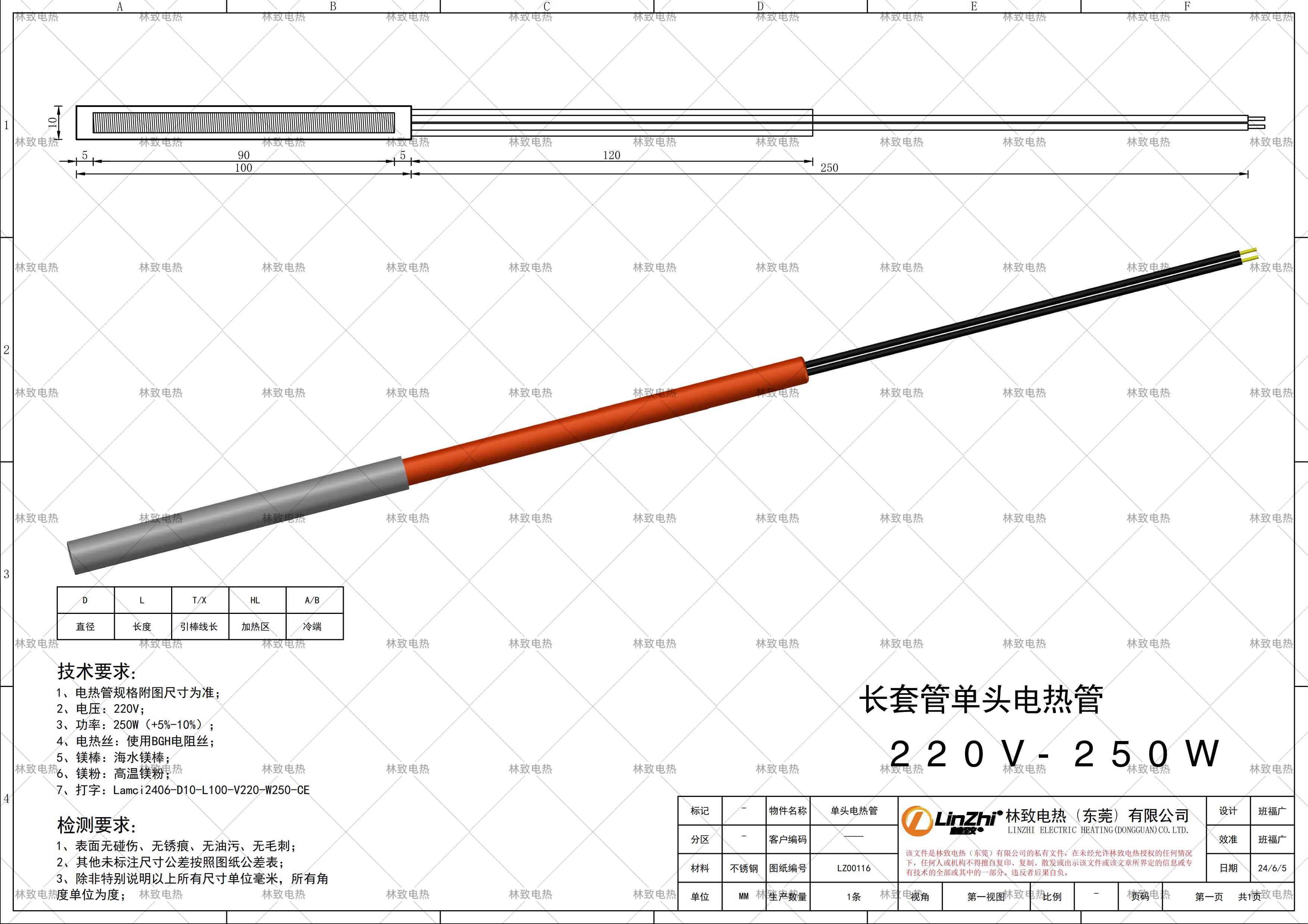 本條產(chǎn)品規(guī)格為下圖紙的規(guī)格*電壓*功率*線長,如需要定制其他規(guī)格請聯(lián)系林致電熱給我們數(shù)據(jù),聯(lián)系林致電熱可以把圖紙截圖或者報本圖紙編碼:LZ00116即可。