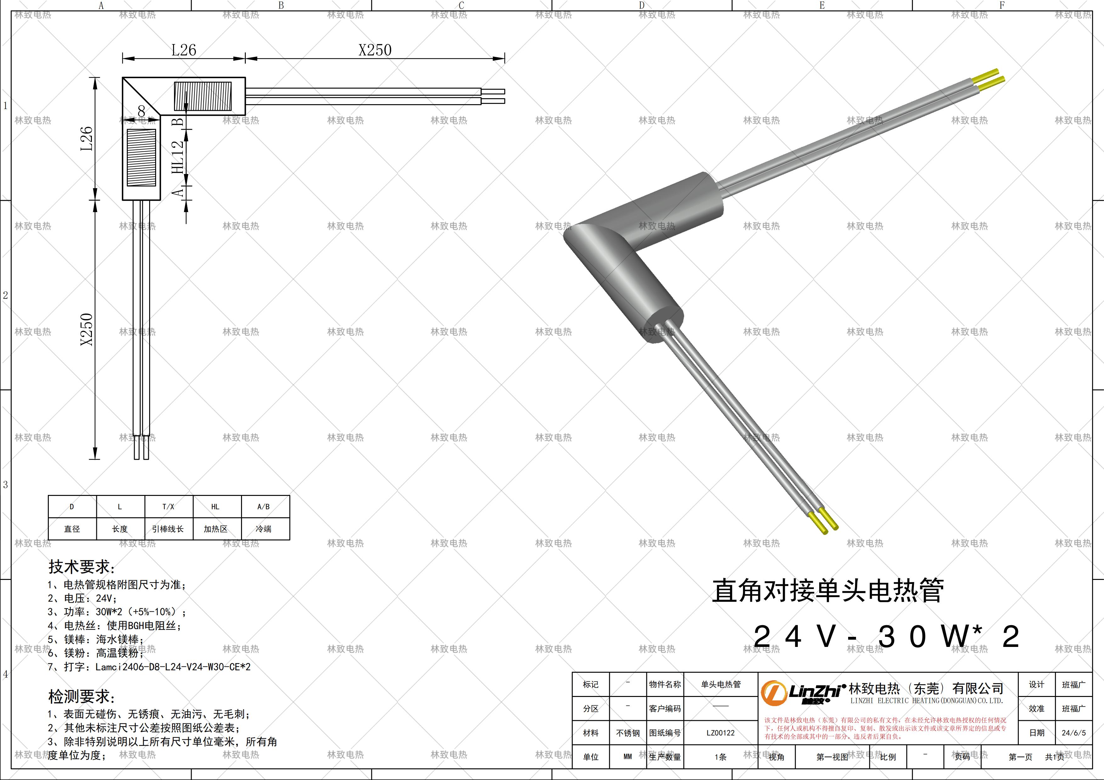 本條產(chǎn)品規(guī)格為下圖紙的規(guī)格*電壓*功率*線長,如需要定制其他規(guī)格請聯(lián)系林致電熱給我們數(shù)據(jù),聯(lián)系林致電熱可以把圖紙截圖或者報(bào)本圖紙編碼:LZ00122即可。