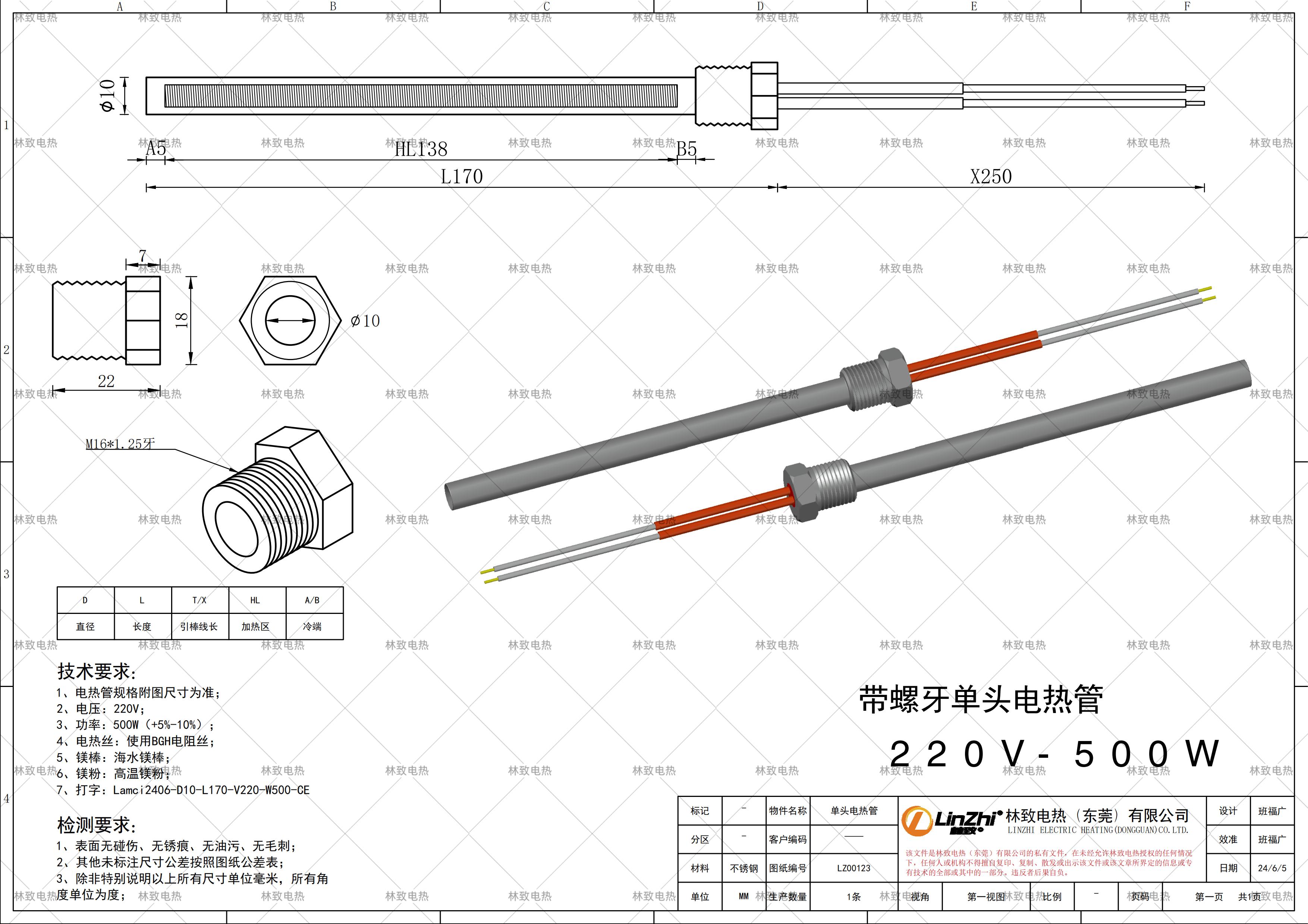 本條產(chǎn)品規(guī)格為下圖紙的規(guī)格*電壓*功率*線長,如需要定制其他規(guī)格請聯(lián)系林致電熱給我們數(shù)據(jù),聯(lián)系林致電熱可以把圖紙截圖或者報本圖紙編碼:LZ00123即可。