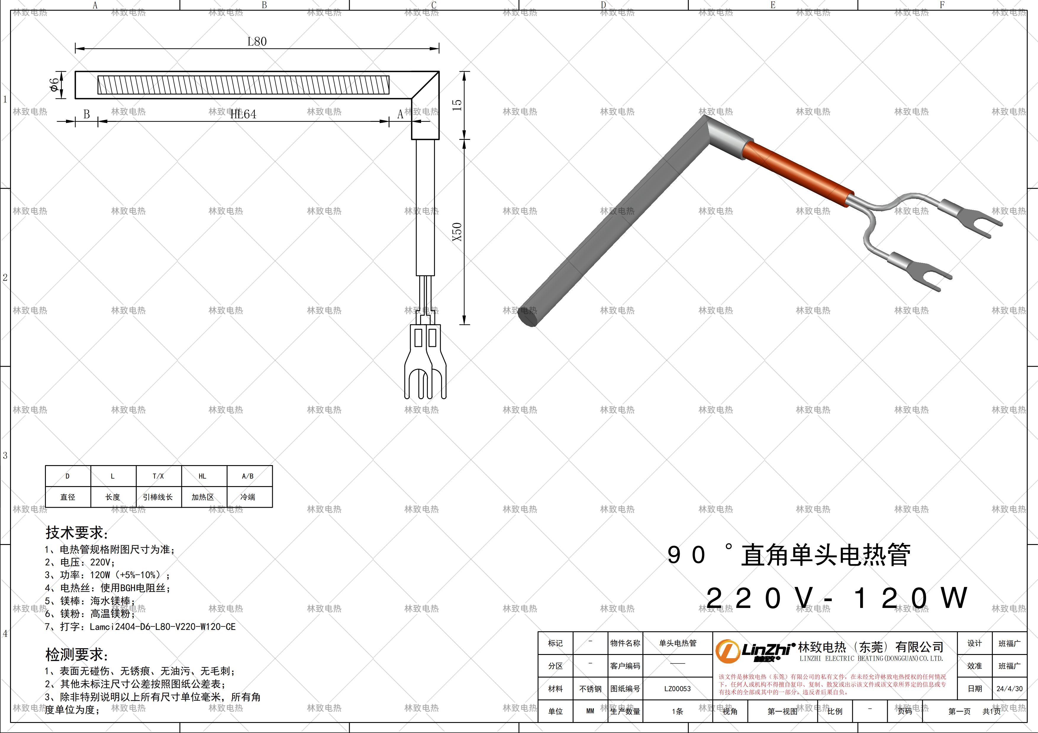 本條產(chǎn)品規(guī)格為下圖紙的規(guī)格*電壓*功率*線長(zhǎng),如需要定制其他規(guī)格請(qǐng)聯(lián)系林致電熱給我們數(shù)據(jù),聯(lián)系林致電熱可以把圖紙截圖或者報(bào)本圖紙編碼:LZ00053即可。