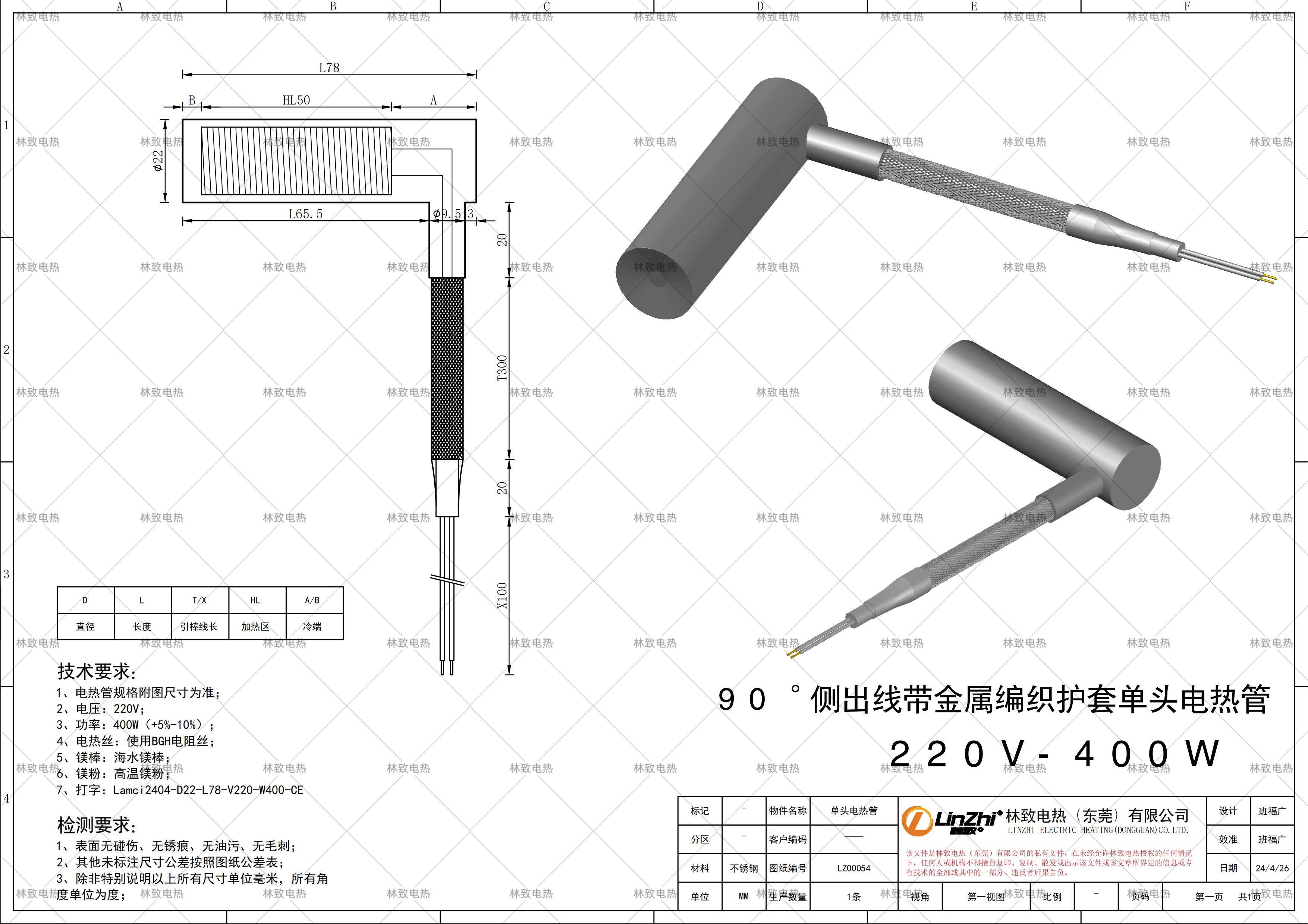本條產(chǎn)品規(guī)格為下圖紙的規(guī)格*電壓*功率*線長,如需要定制其他規(guī)格請聯(lián)系林致電熱給我們數(shù)據(jù),聯(lián)系林致電熱可以把圖紙截圖或者報本圖紙編碼:LZ00054即可。