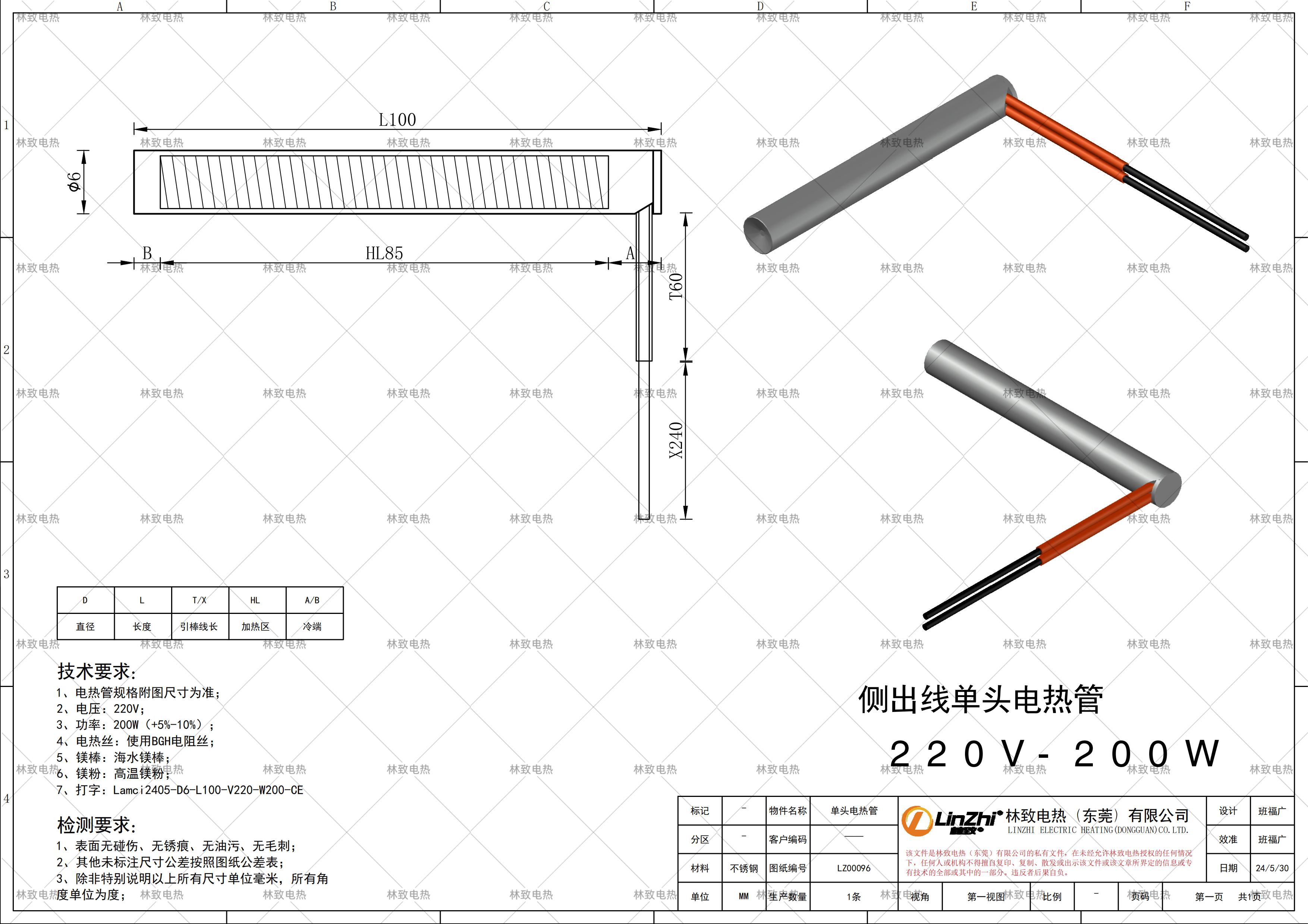 本條產品規(guī)格為下圖紙的規(guī)格*電壓*功率*線長,如需要定制其他規(guī)格請聯(lián)系林致電熱給我們數(shù)據(jù),聯(lián)系林致電熱可以把圖紙截圖或者報本圖紙編碼:LZ00096即可。