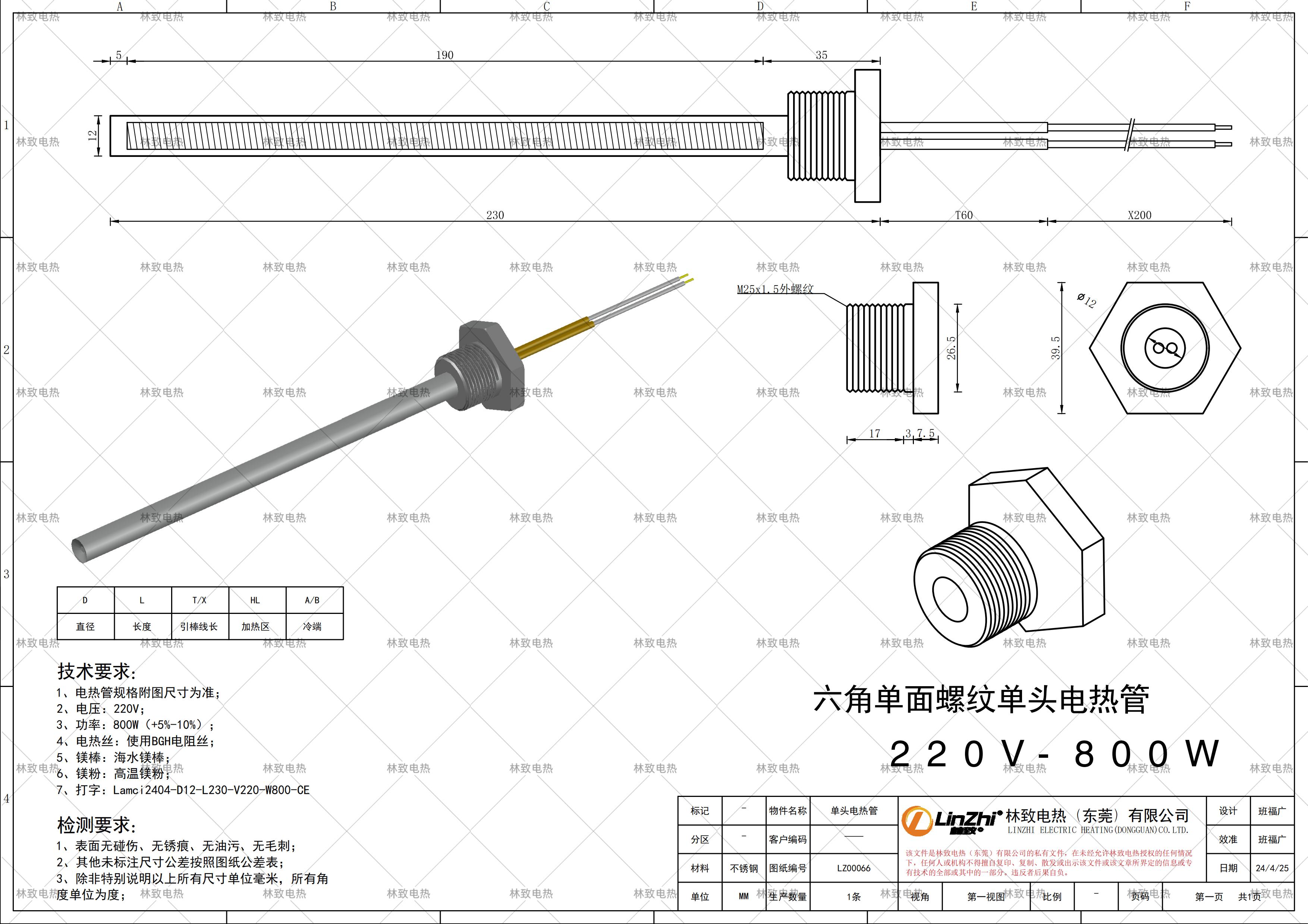 本條產(chǎn)品規(guī)格為下圖紙的規(guī)格*電壓*功率*線長(zhǎng),如需要定制其他規(guī)格請(qǐng)聯(lián)系林致電熱給我們數(shù)據(jù),聯(lián)系林致電熱可以把圖紙截圖或者報(bào)本圖紙編碼:LZ00066即可。