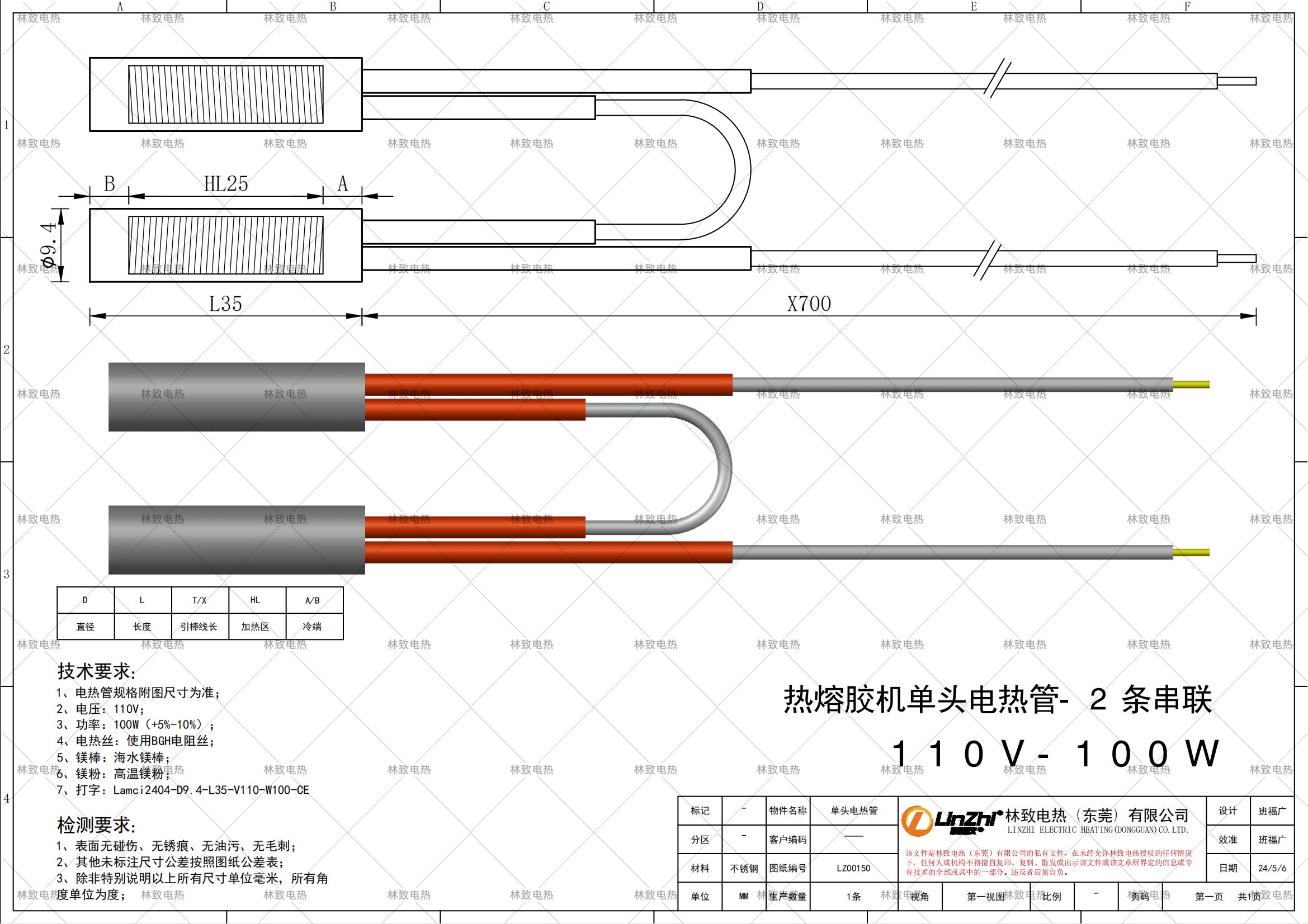 本條產(chǎn)品規(guī)格為下圖紙的規(guī)格*電壓*功率*線長(zhǎng),如需要定制其他規(guī)格請(qǐng)聯(lián)系林致電熱給我們數(shù)據(jù),聯(lián)系林致電熱可以把圖紙截圖或者報(bào)本圖紙編碼:LZ00150即可。