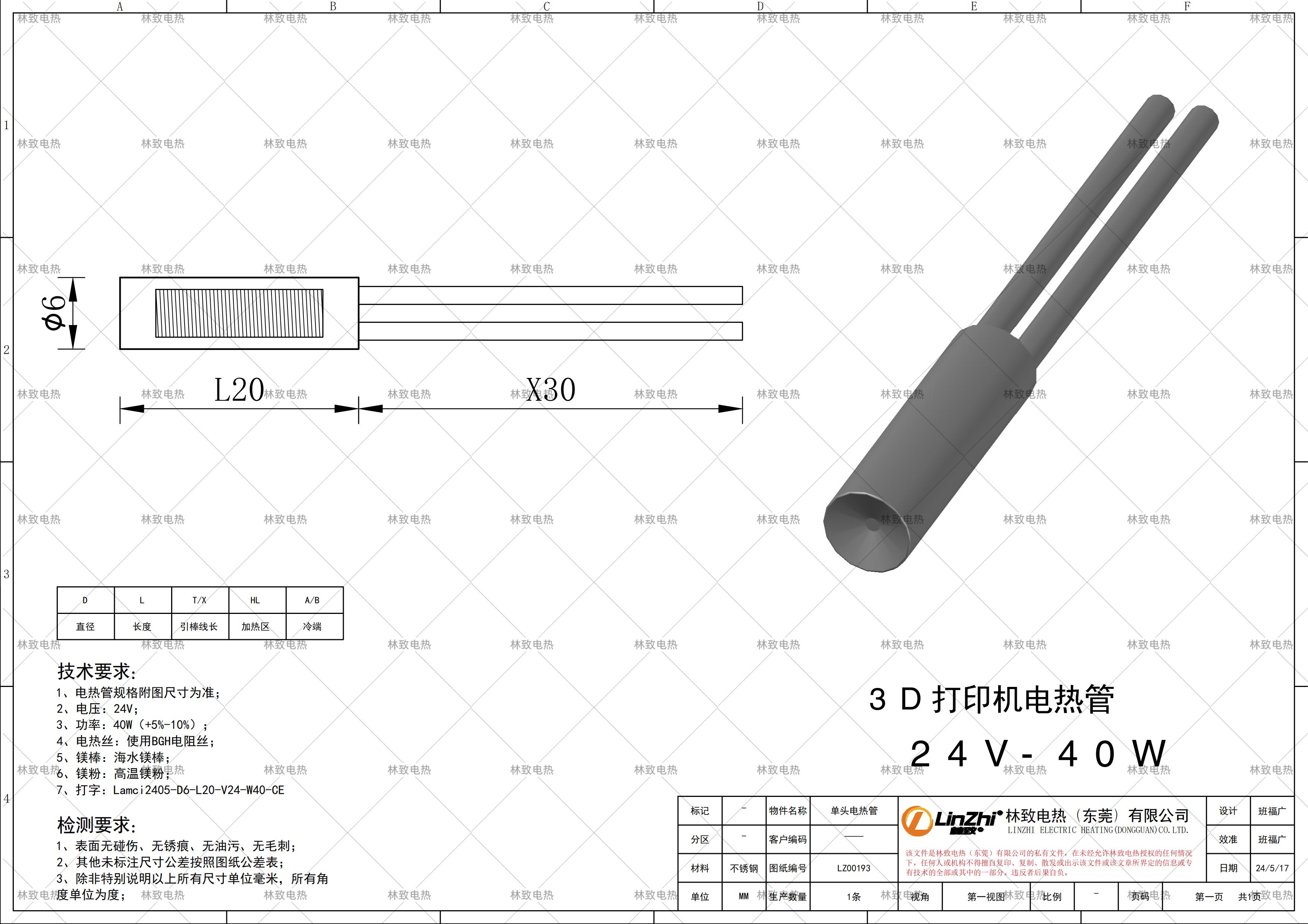 本條產(chǎn)品規(guī)格為下圖紙的規(guī)格*電壓*功率*線長,如需要定制其他規(guī)格請聯(lián)系林致電熱給我們數(shù)據(jù),聯(lián)系林致電熱可以把圖紙截圖或者報本圖紙編碼:LZ00193即可。