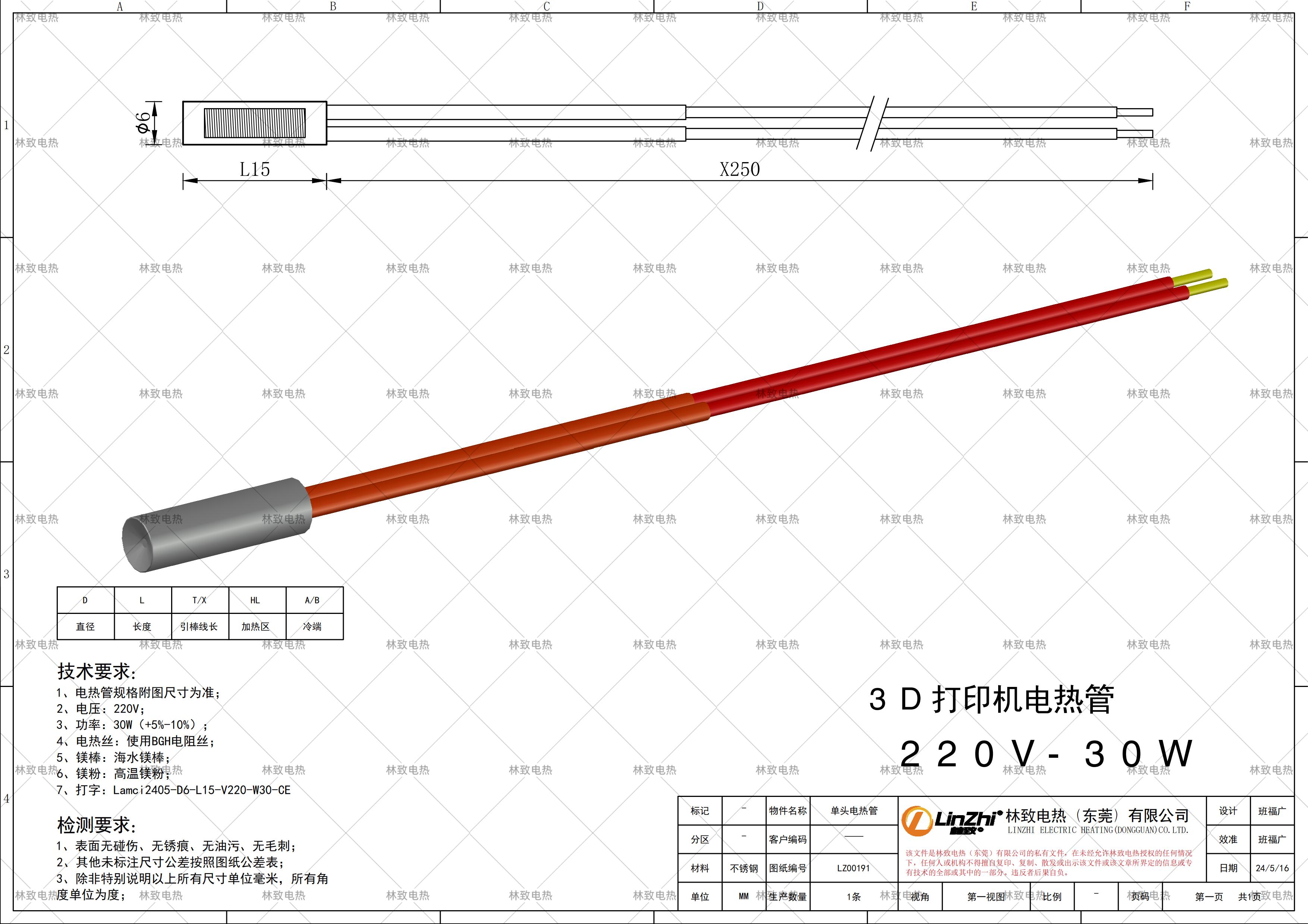 本條產(chǎn)品規(guī)格為下圖紙的規(guī)格*電壓*功率*線長,如需要定制其他規(guī)格請聯(lián)系林致電熱給我們數(shù)據(jù),聯(lián)系林致電熱可以把圖紙截圖或者報(bào)本圖紙編碼:LZ00191即可。