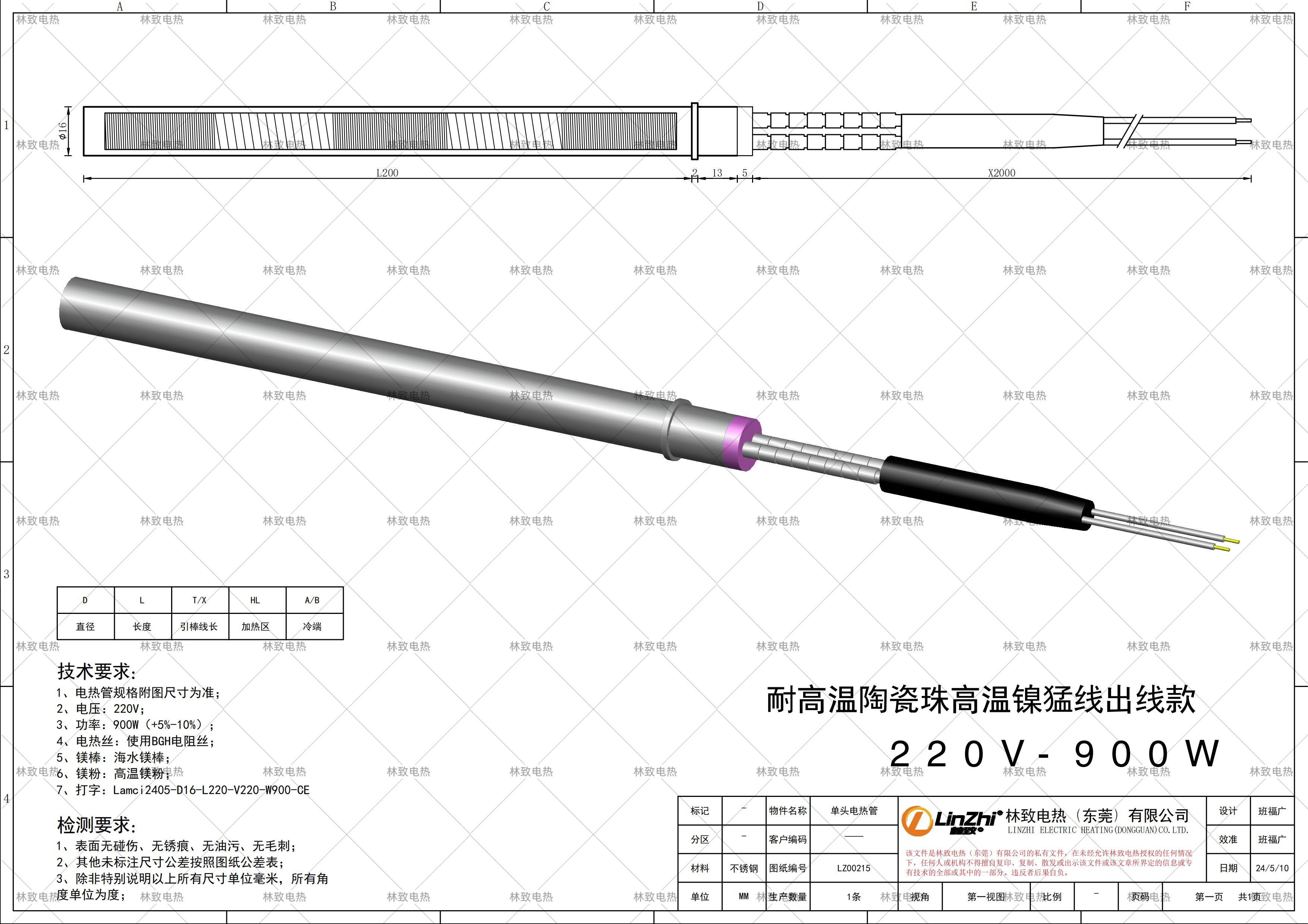 本條產品規(guī)格為下圖紙的規(guī)格*電壓*功率*線長,如需要定制其他規(guī)格請聯(lián)系林致電熱給我們數據,聯(lián)系林致電熱可以把圖紙截圖或者報本圖紙編碼:LZ00215即可。